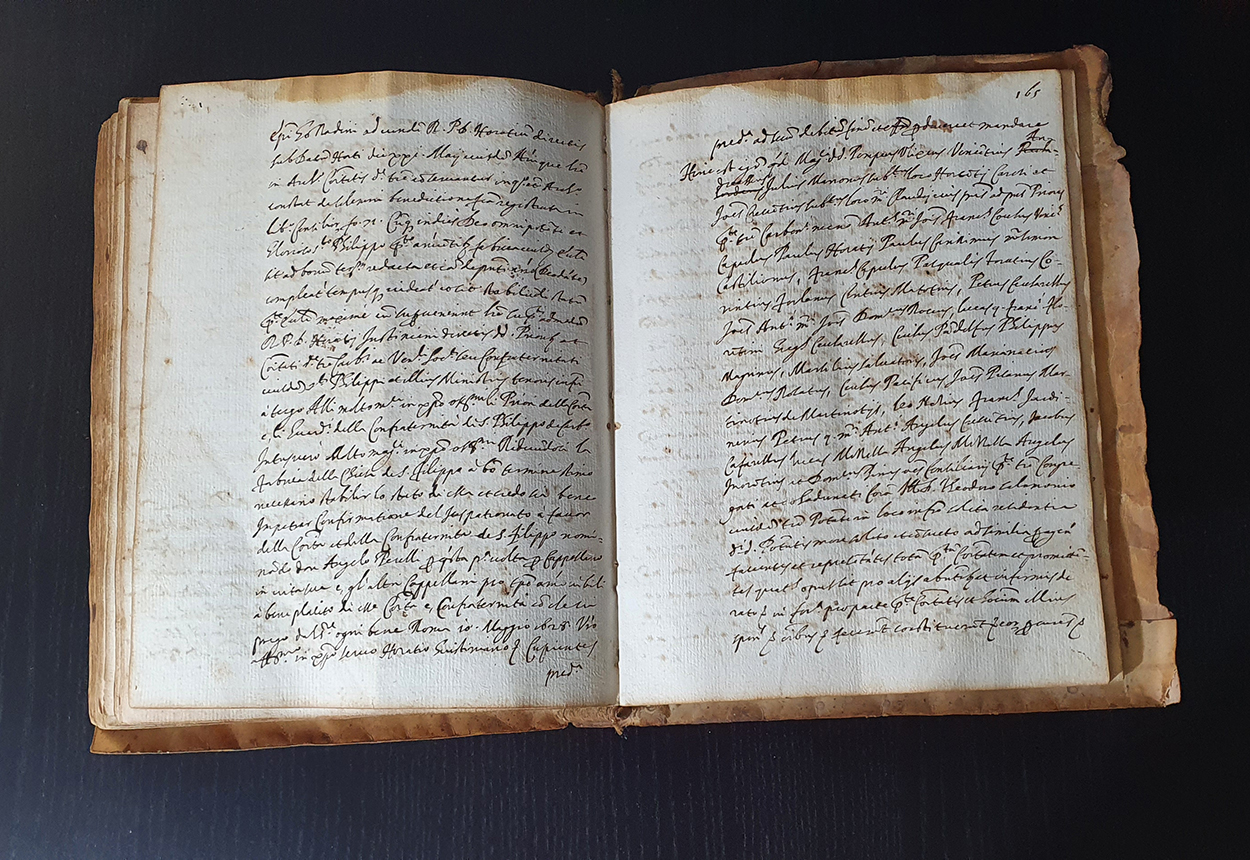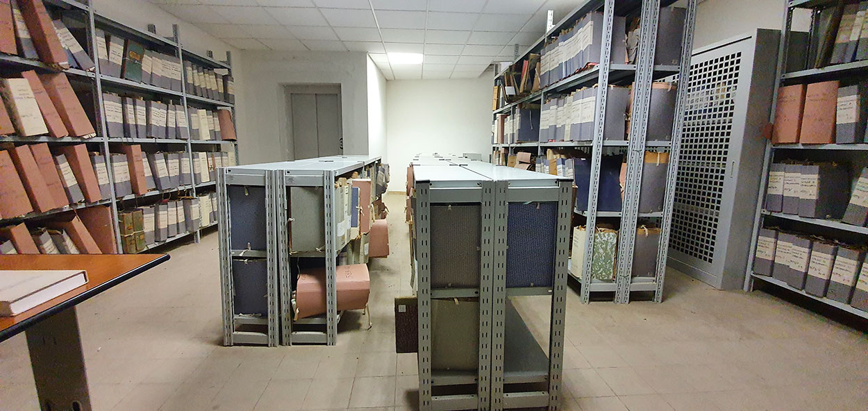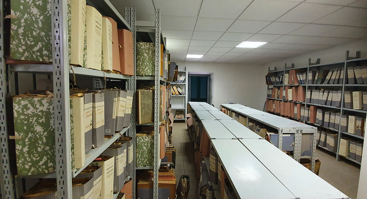 Just taken the alley of sant’Angelo, going up 20 meters on the left there is a widening. At number 41 of the widening that has the same name of sant’Angelo, a plate shows us the presence of the Historical Archives. As soon as we enter, a small room on the left shows us access to the Archives. A consultable copy of the inventory of the Municipal Historical Archives allows us to find the necessary documentation. The books corresponding to the cataloguing of the Old Regime, being older, are conserved with greater care inside a piece of furniture closed with a padlock. The other documents are subdivided by period on the shelves placed around the room and in the center. An elevator at the end of the room allows access from the street below, Via San Filippo Neri, at number 57. This is the access for the Playroom and the Library, and it is particularly suitable for loading and unloading paper material through the elevator inside the room which leads to the archives.